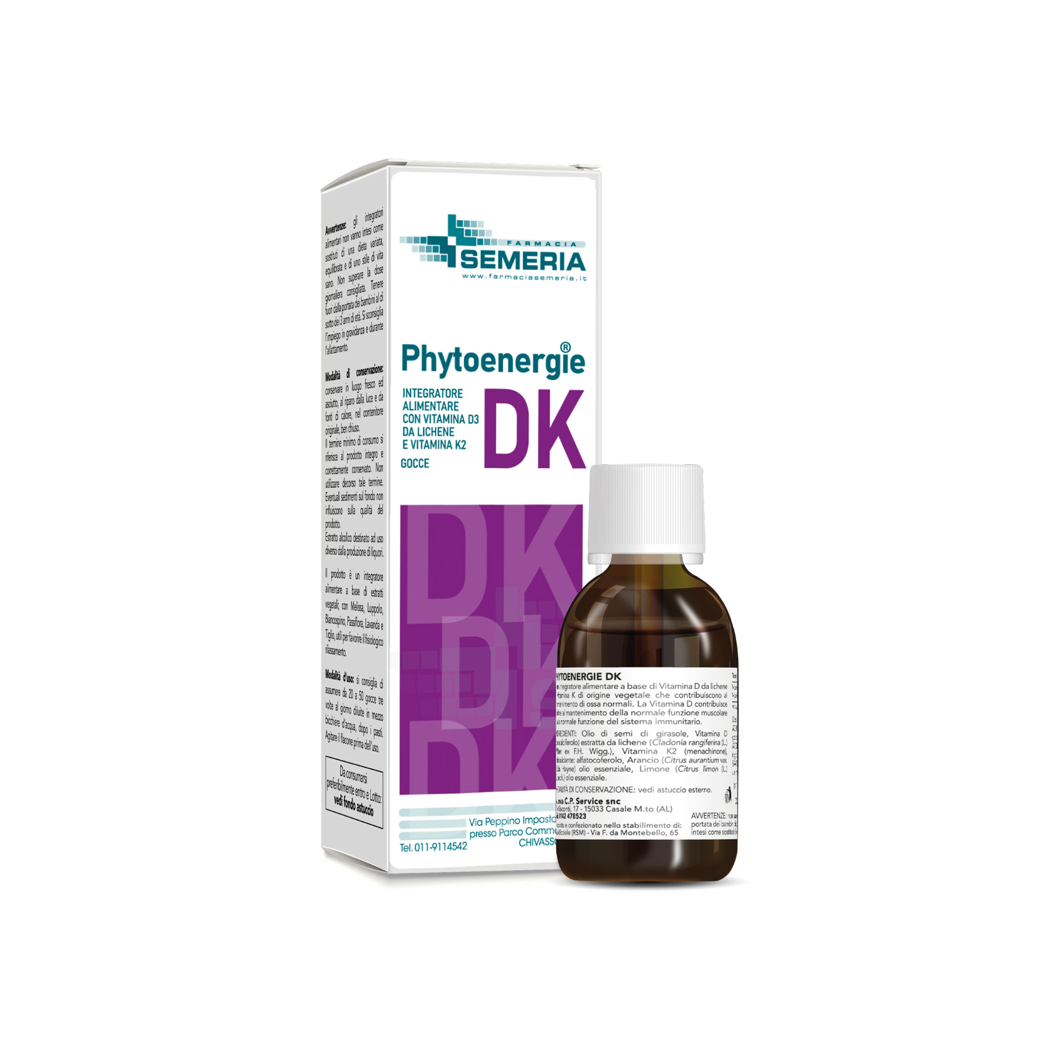 Olio di semi di girasole, Vitamina D (Colecalciferolo) estratta da lichene (Cladonia rangiferina L. Weber ex FH Wigg), Vitamina K2 (menachione), antiossidante: alfatocoferolo, Arancio (citrus aurantium var dulcis Hayne)