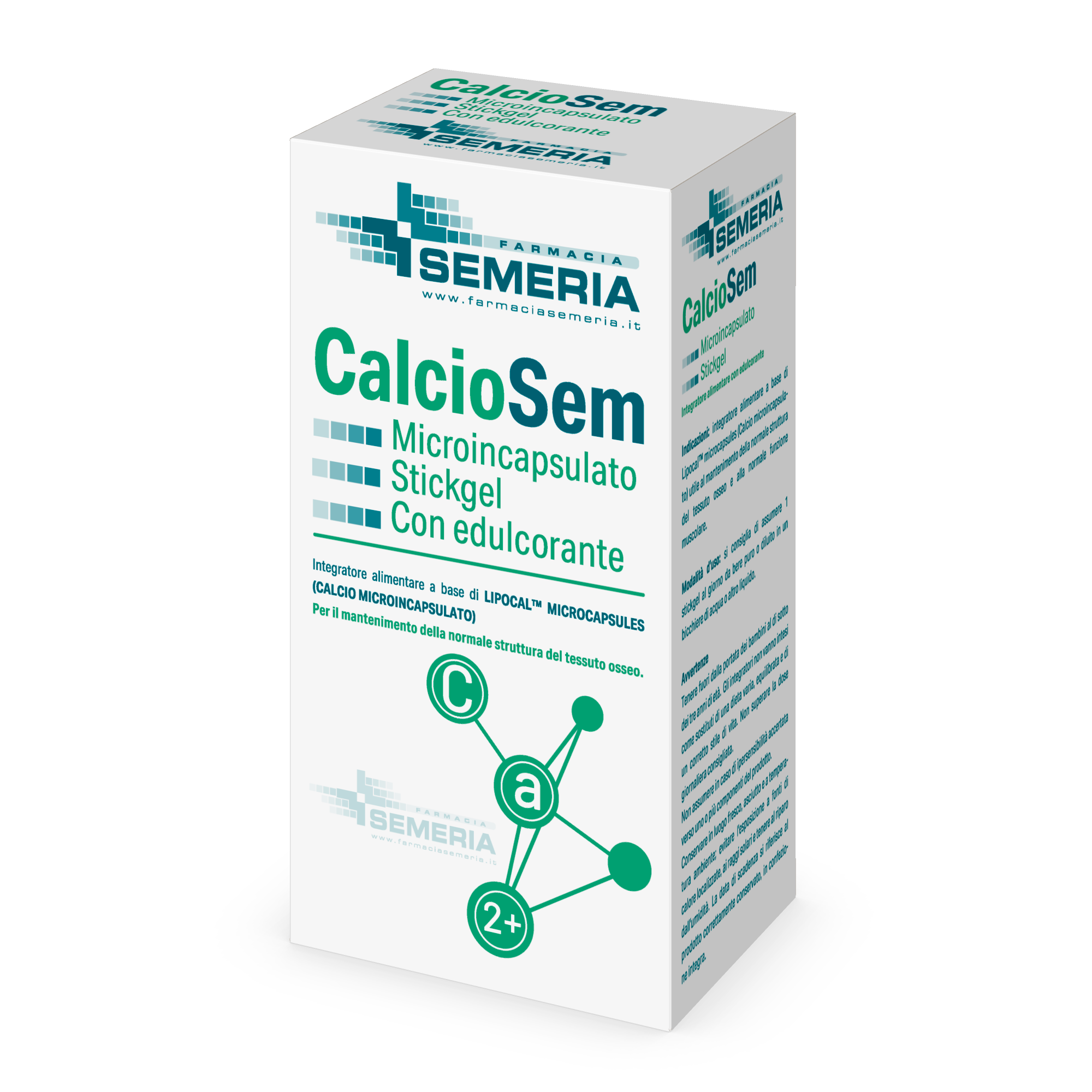 Integratore alimentare a base di Calcio microincapsulato utile al mantenimento della struttura del tessuto osseo e alla normale funzione muscolare. SENZA GLUTINE, LATTOSIO e ZUCCHERO.